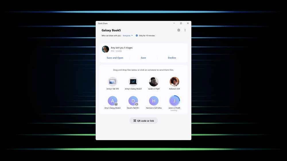 Quick Share, разработанная компанией Samsung, предлагает функцию обмена файлами в один клик, специально разработанную для устройств Samsung Galaxy, но также поддерживает ПК на базе Windows с необходимыми системными требованиями. Это простая, бесплатная и лёгкая утилита, которая сделает процесс обмена файлами быстрым и удобным как для профессионального, так и для личного использования.